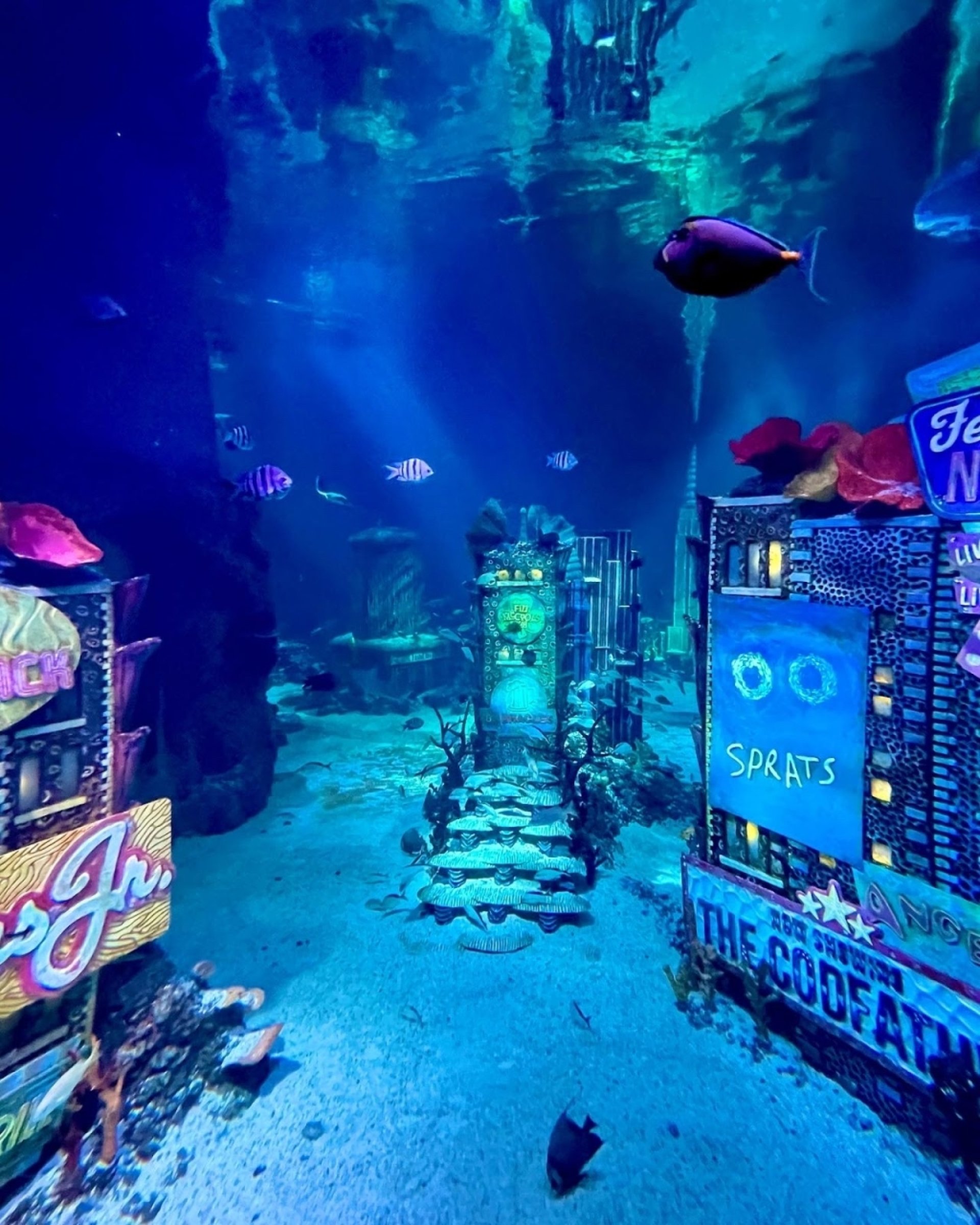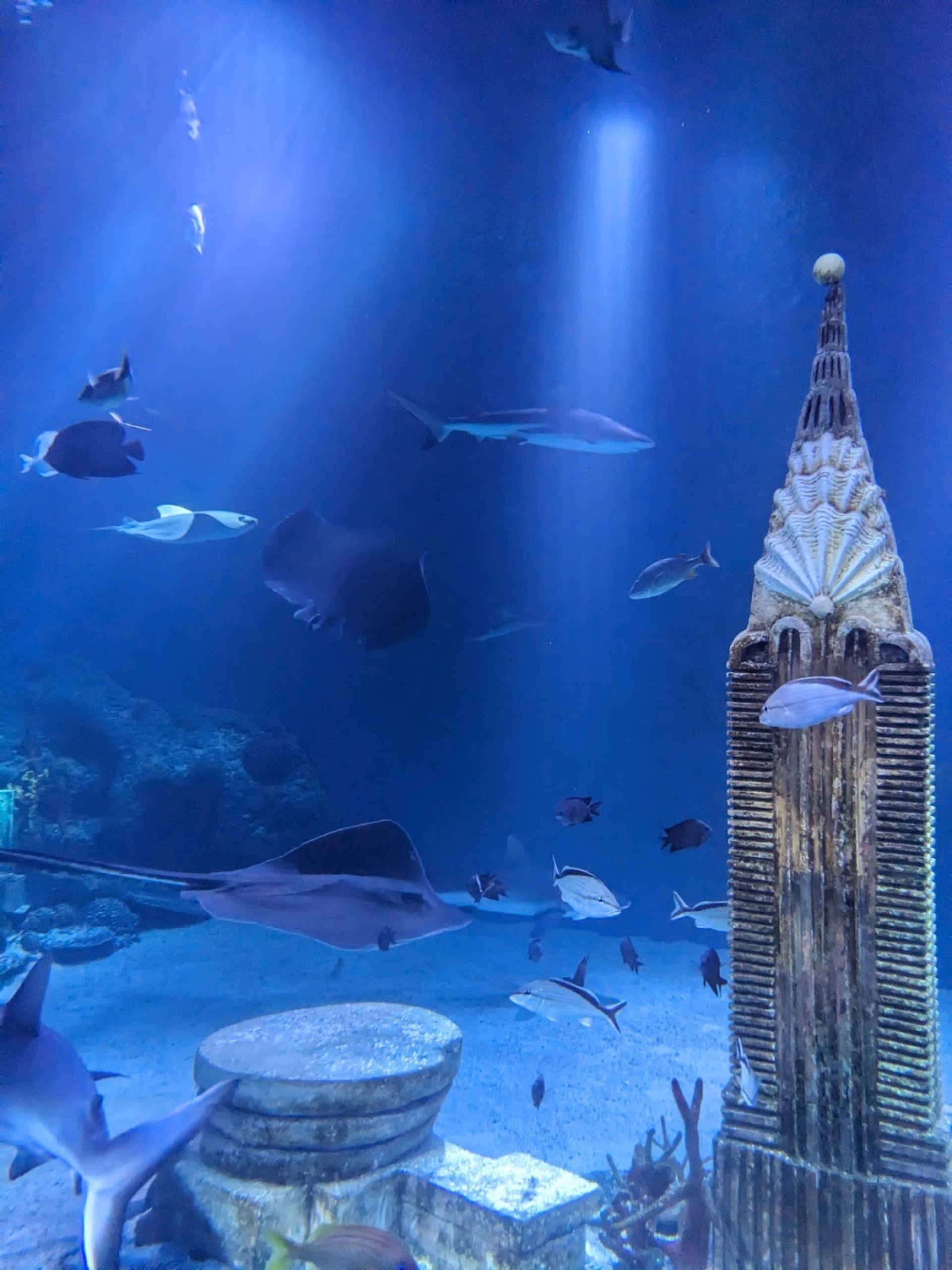 Fantastic experience: If you want to escape the mall for a bit, this is the place to go! We knew this was going to be a small aquarium but it was actually bigger than we expected and quite beautiful. It's very clean and well designed with various nooks and crannies to explore. You can pop your head up into a few tanks for fun pics. We saw Jellyfish, Stingrays, Seahorses, Coral, Sharks and a variety of fish. Everyone on the staff was very friendly and seemed to love working there. Loved seeing the NYC landmarks underwater with all of the fish swimming around them. Very cool.