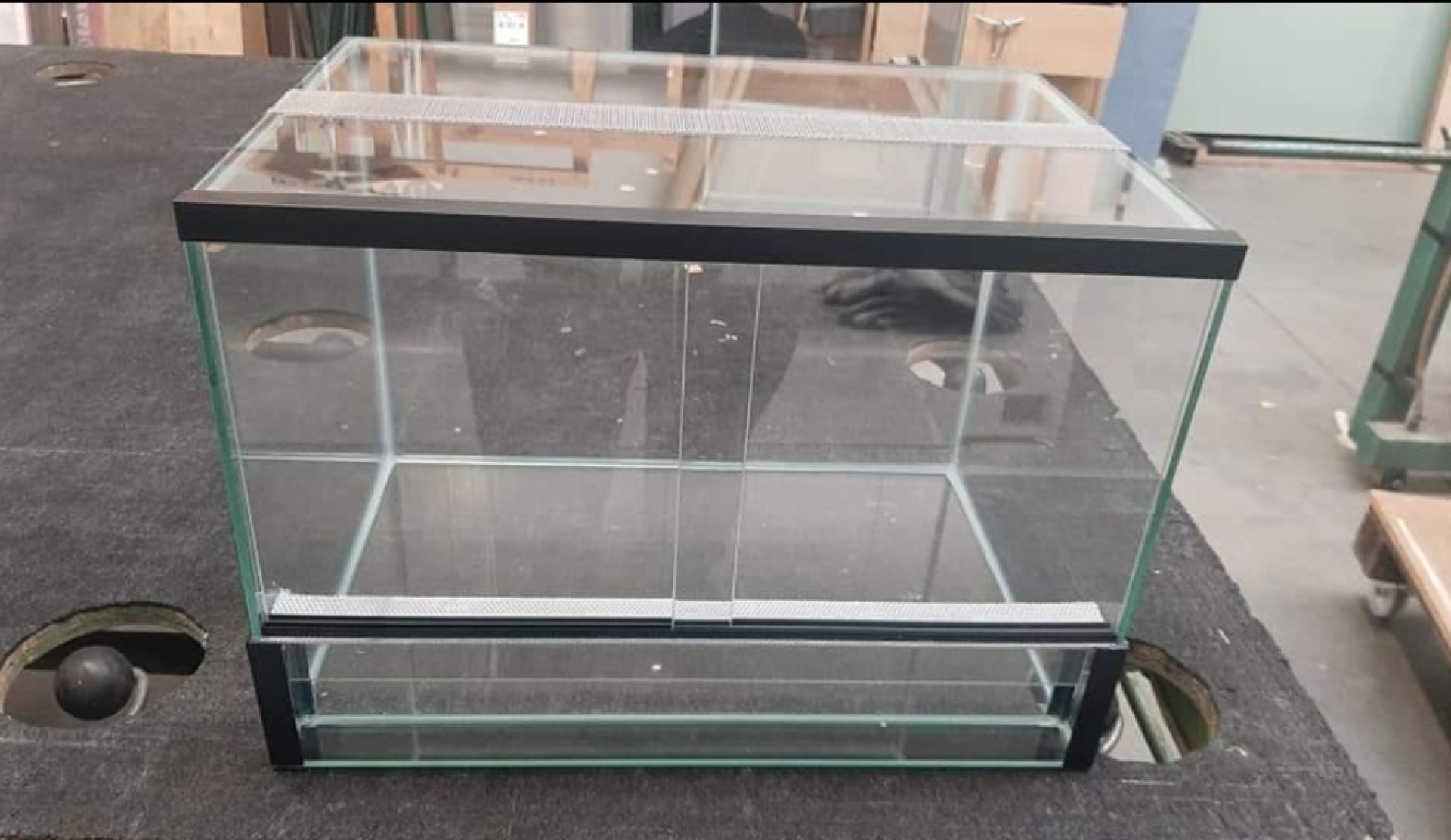 Fantastic experience: Groot terrarium op maat laten maken met verluchtingsstrip bovenaan en onderaan. Heel goede afwerking en correcte levering binnen de afgesproken tijd. Maxime is van zijn woord en hij heeft het terrarium dat ik wenste zoals gevraagd geleverd. Ik zal hem zeker overal aanbevelen voor zijn goede werk.