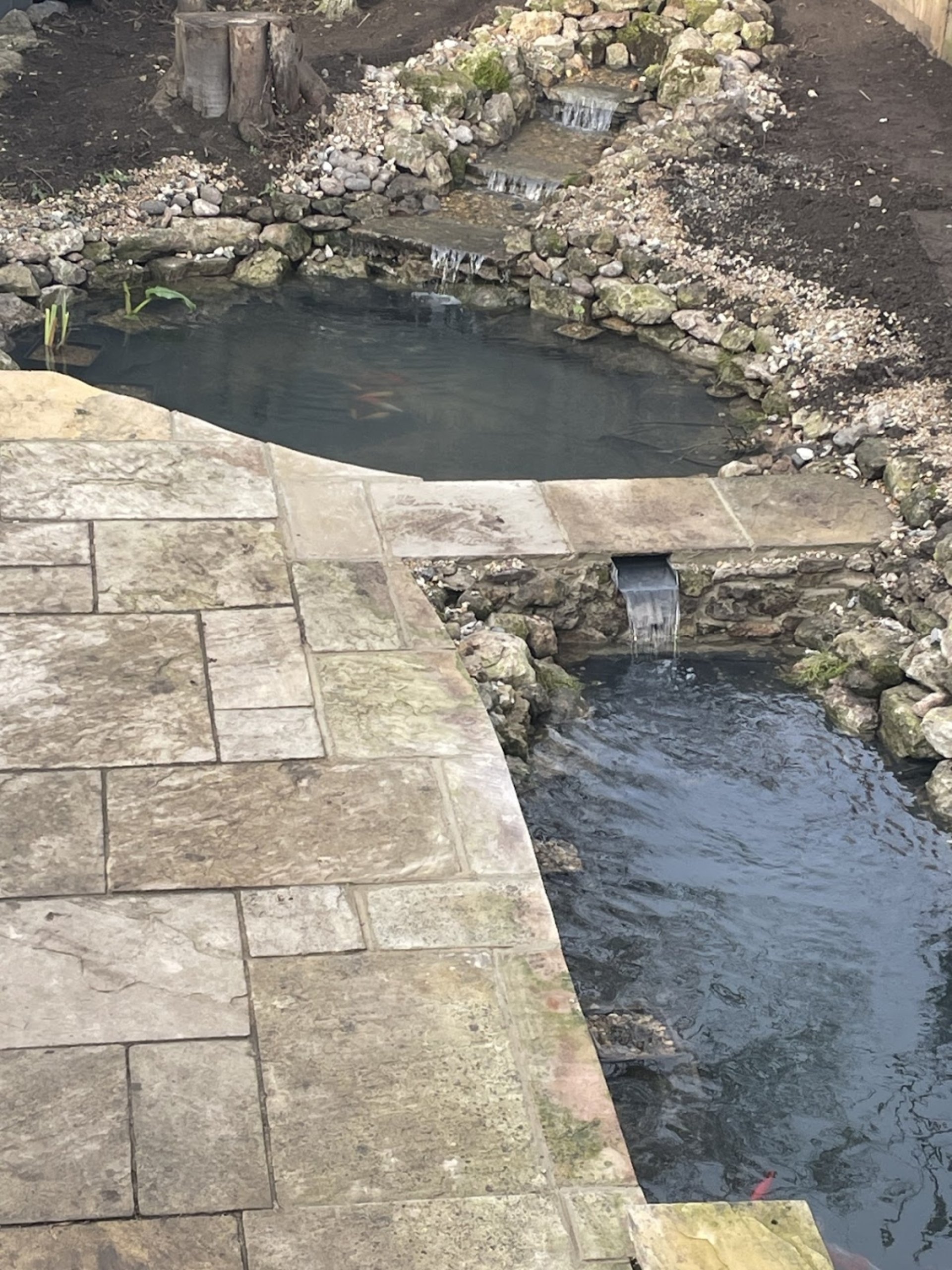 Fantastic experience: Neil has done an amazing job with our ponds. We recently moved into a new house with a waterfall leading into a top pond and leading via another waterfall into a bottom pond. We were unsure what to do as the pond looked dilapidated and leaked but it had potential. Neil came highly recommend and his vision and hard work has absolutely transformed the ponds into an amazing feature of the garden with beautiful flowing waterfalls and a bridge across the two ponds - we are so pleased with the result - Neil and team were very hardworking and professional and happy to give lots of advice. thank you very much - Terry and Rebecca
