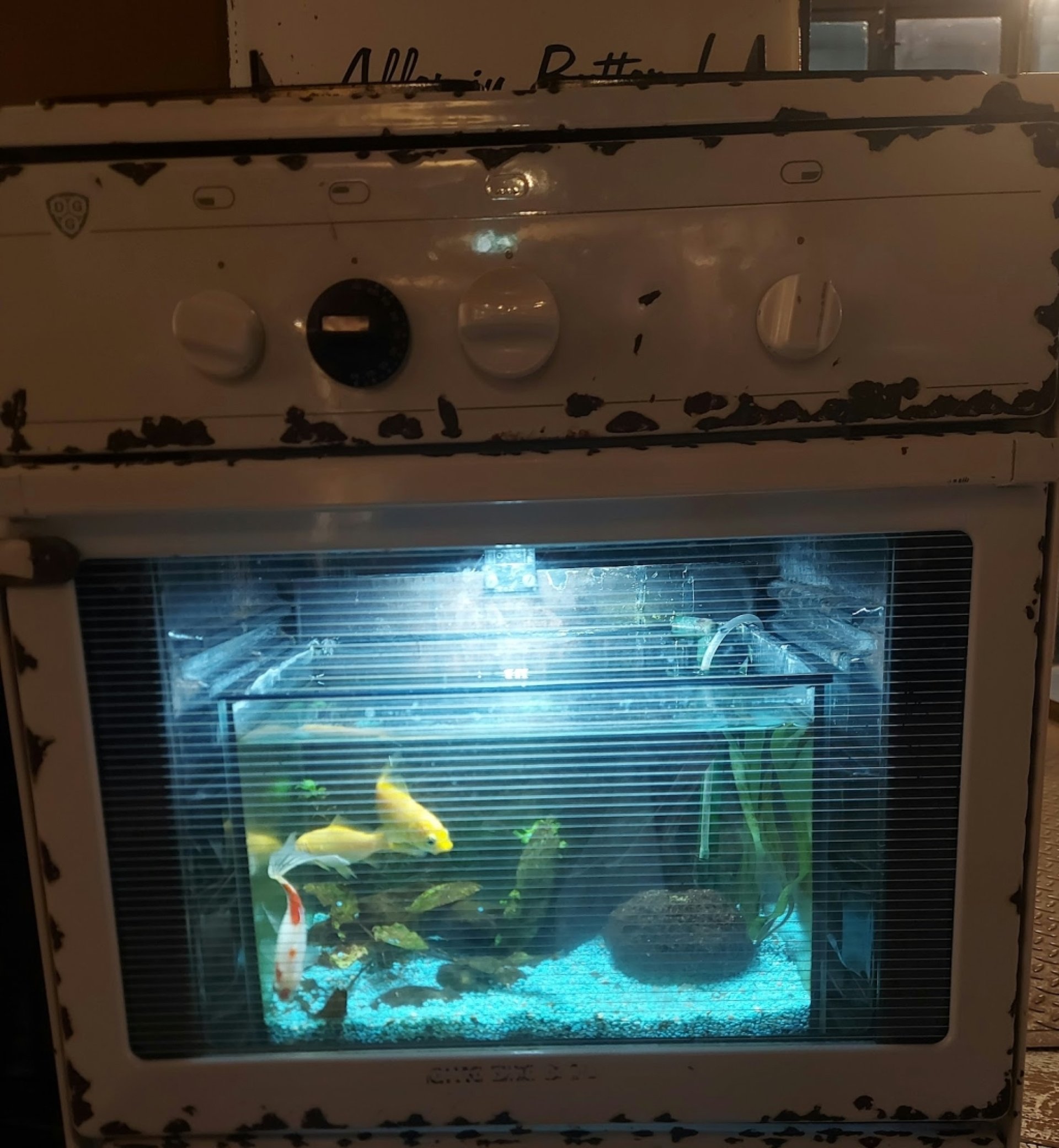 Fantastic experience: Tolles Aquarium mit außergewöhnlichen Aquarien, wie zum Beispiel in einem Backofen. Oder es gibt einen Fischkindergarten und zu Halloween entsprechende Deko