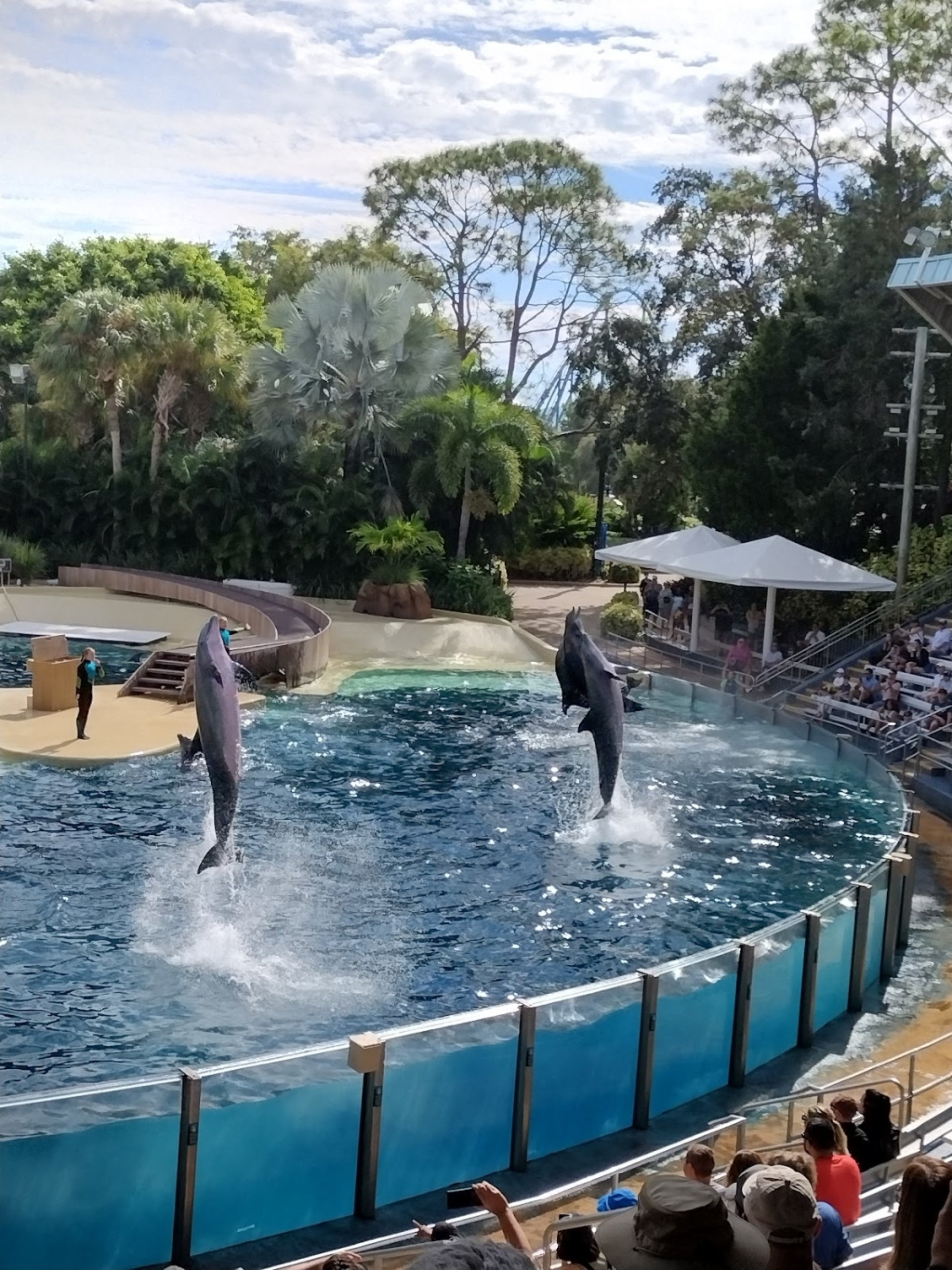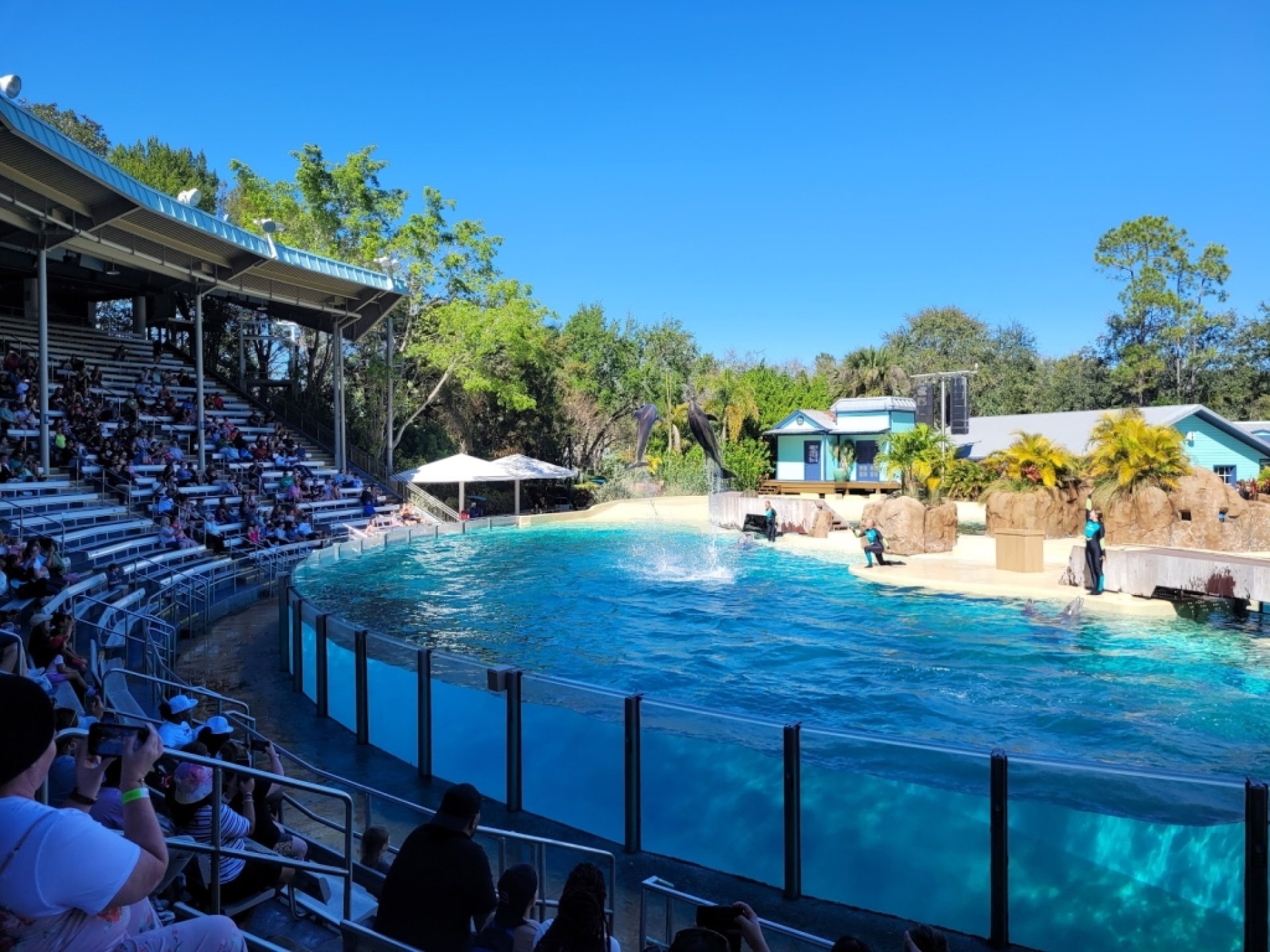 Experiencia fantástica: I was amazed at how many tricks the dolphins knew and how in sync they were with each other and the trainers. I felt like the performers cared about the animals deeply and treated them with respect and love! The show wasn't too packed and I had plenty of room and a great vantage point!