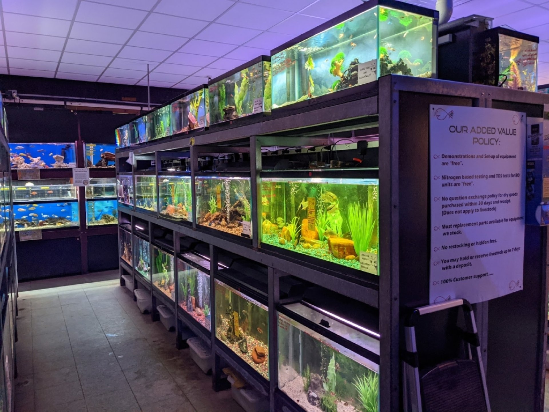 Experiencia fantástica: I feel like a kid in a candy store but one can only put so much on a 40 gallon tank. Friendly service, healthy fish anything one would need for tank maintenance.