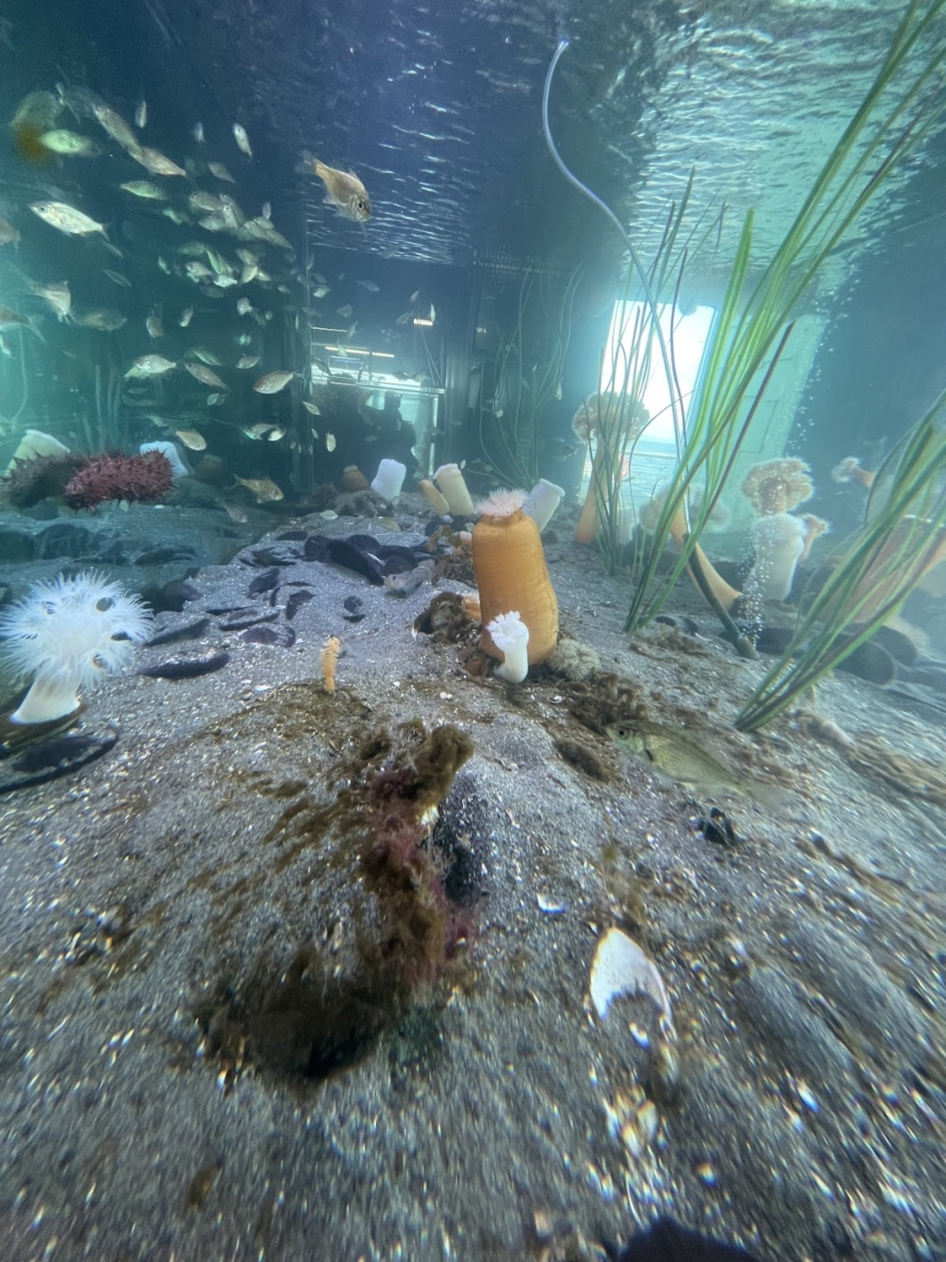 Experiencia fantástica: My experience started with a volunteer outside the aquarium who had skulls of a few marine animals and talked a little about each. Then, we went inside and walked through a hallway that had beautiful photos on the walls, marine animal skins, and skeletons. Then, to get to the aquarium you walk on a pier that had hilarious jokes on both sides. Truly enjoyed the walk (: "what do you call a fish that hoards all its sand dollars? Shellfish!" The aquarium itself is super cute. They've got little stingrays, anemone, starfish, fish, sand dollars, jellyfish, etc. Love seeing all that fauna up close and personal. The student volunteers had interesting lab coats with drawings/paintings on the back. Overall great experience.